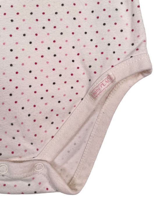 6-9 mo, The Children's Place, Cream, Small polka dot long-sleeve bodysuit, pinks/black, bow