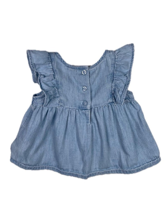 3-6 mo, babyGap, Blue, Flutter sleeve light denim top