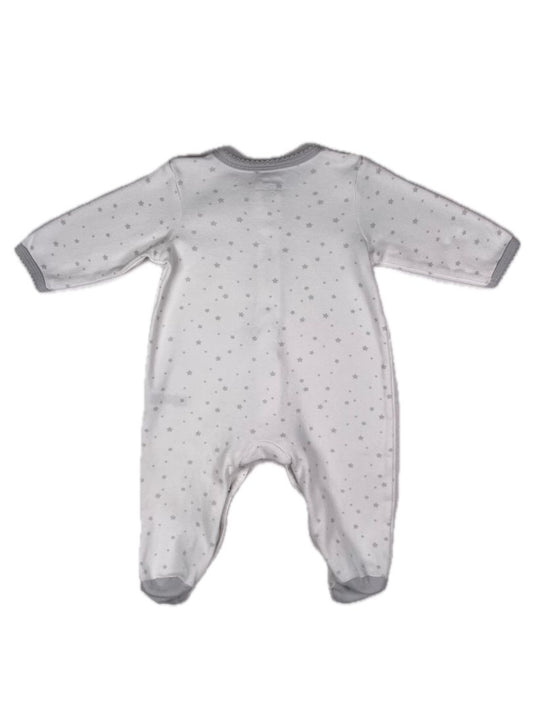 6 mo Little Me, White, Long-sleeve star print snap-up footed coverall, grey stars & trim