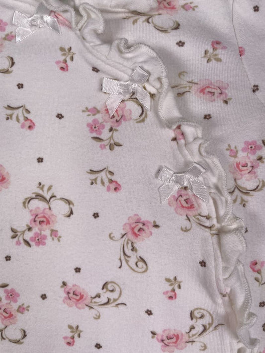 3 mo, Little Me, White, Floral print, footed, snap-up coverall w/ ruffle and bows, pink/green