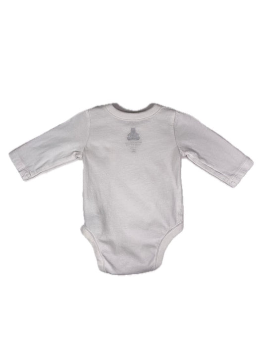 0-3 mo babyGap, White, Long-sleeve bodysuit, pocket w/ embroidered bear