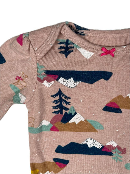 3 mo, Carter's, Pink, Mountain/winter animal print long-sleeve bodysuit, pink bow