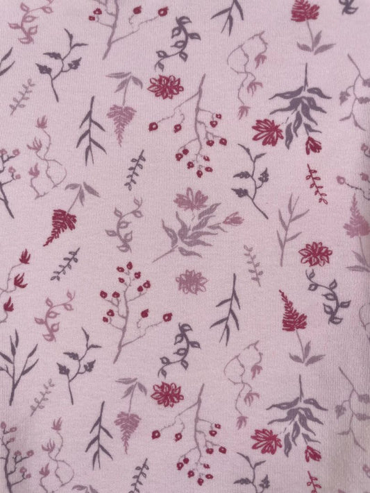 3-6 mo, Très Beau et Belle, Pink, Pima cotton flower/branch print long-sleeve bodysuit