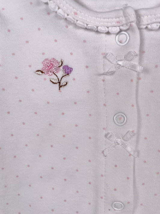 Newborn, Little Me, White, Pink polka dot snap-up long-sleeve shirt/layer w/ bows & embroidered flowers