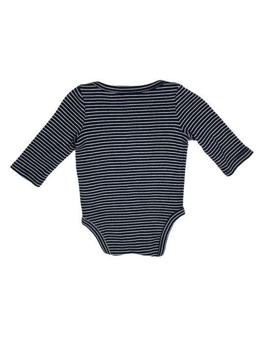 0-3 mo, babyGap, White, Navy striped long-sleeve bodysuit, blue embroidered bear