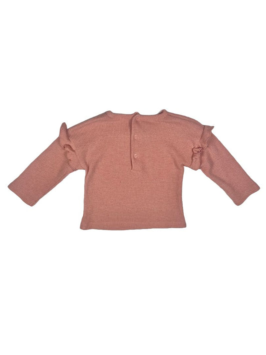 3-6 mo, Bloomie's Baby, Pink, Waffle-knit long-sleeve shirt w/ ruffles at shoulders