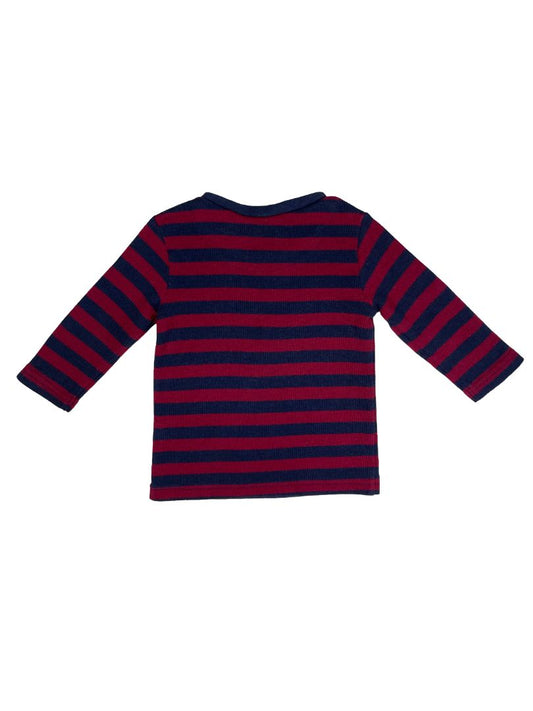 3-6 mo, First Impressions, Blue, Red striped long-sleeve waffle-knit shirt