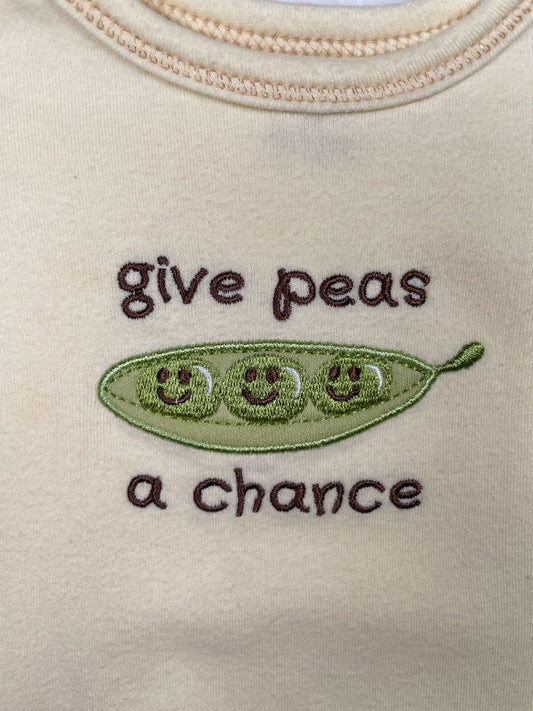 0-3 mo, Touched by Nature, Yellow, "Give peas a chance" embroidered short-sleeve bodysuit w/ pea pod