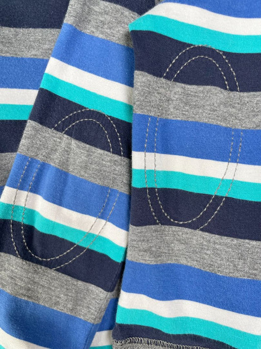 2/2T, OshKosh B'Gosh, Grey, Blue and teal striped long-sleeve henley shirt, stitched elbows