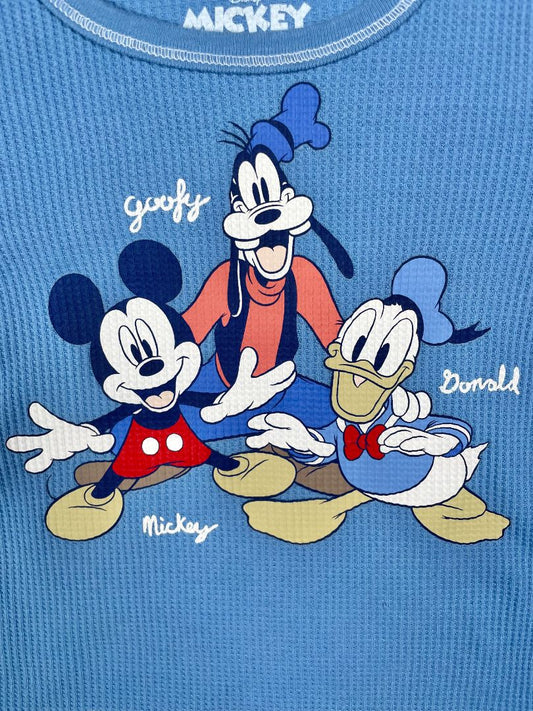 3/3T, Disney, Blue, Mickey Mouse, Goofy, Donald Duck waffle-knit long-sleeve shirt