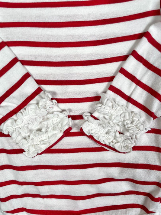 18-24 mo, Ruffle Butts, White, Red striped long-sleeve bodysuit, ruffles on cuffs