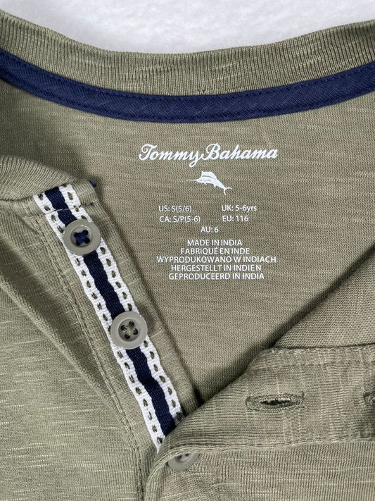 5-6, Tommy Bahama, Green, Short-sleeve henley t-shirt, navy trim
