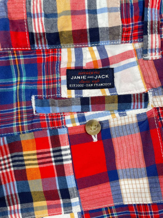 5/5T, Janie and Jack, Red, Patchwork madras shorts, adjustable, navy/yellow/white