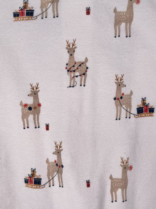 0-3 mo, Petit Lem, White, Reindeer print 2-way zip footed coverall
