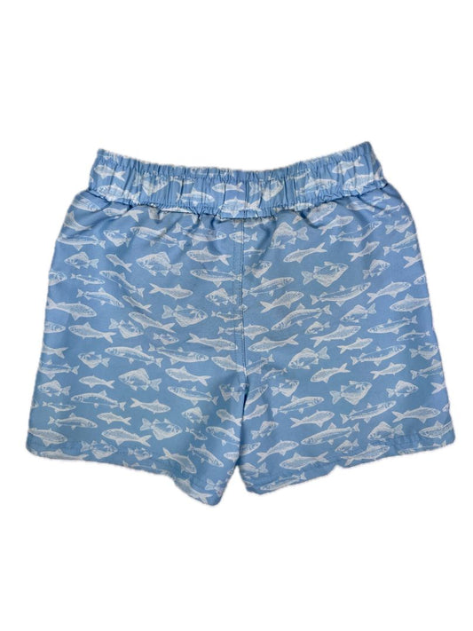 24 mo, Eddie Bauer, Blue, Fish print pull-on swim trunks, decorative tie
