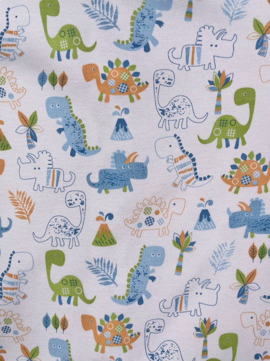 9 mo, Kissy Kissy, White, Pima cotton dinosaur playsuit, blue/green/orange