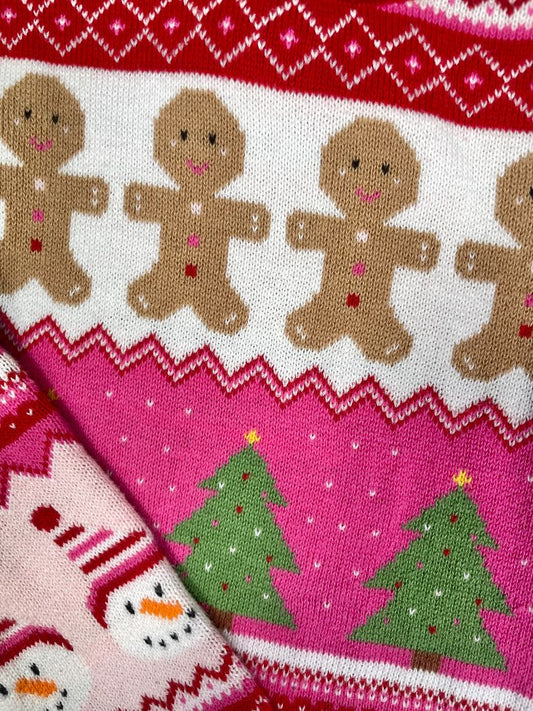 4/4T, Gymboree, Red, Jaquard Christmas sweater, gingerbread, trees, snowmen, peppermint buttons