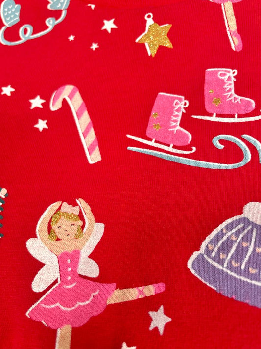 2-3, M&S, Red, Long-sleeve Christmas print dress, ballerinas, ice skates