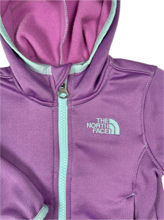 3-6 mo, The North Face, Purple, Hooded zip-up track jacket, aqua zipper & trim