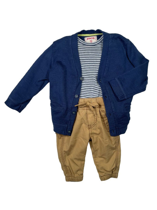 12 mo, Play Up, Blue, Button-up cardigan, green trim