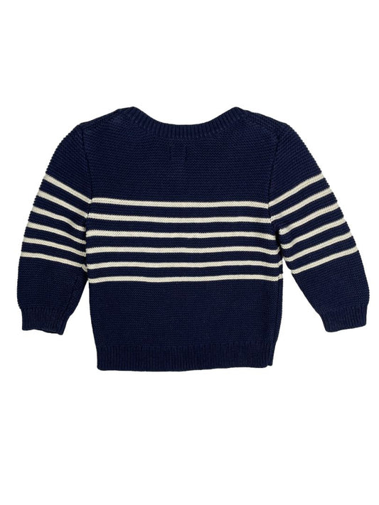 12-18 mo, babyGap, Blue, "Heart Breaker" fisherman knit sweater, white stripes