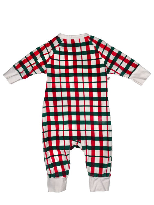 0-3 mo, Monica + Andy, White, Red/green plaid kimono tie one-piece, organic cotton + stretch