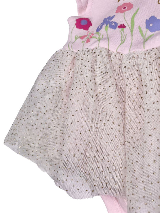 6-9 mo, Nicole Miller, Pink, "Home Grown" short-sleeve bodysuit w/ golden polka dot tulle skirt