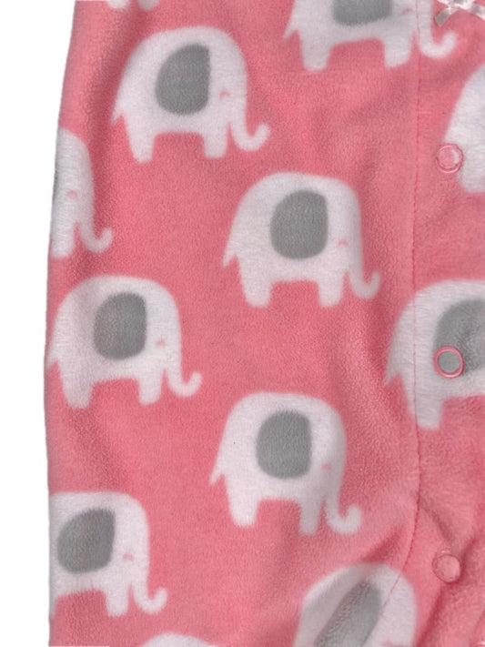 6 mo, Carter's, Pink, Elephant print fleece footed Sleep & Play, snap-up, white/grey