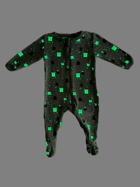 3 mo, Petit Lem, Grey, Glow-in-the-dark present print 2-way zip footed coverall