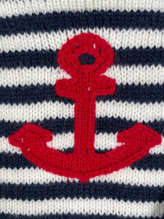 2/2T American South Side, Multi, Navy/white striped sweater w/ red anchor, mock neck, 100% alpaca wool