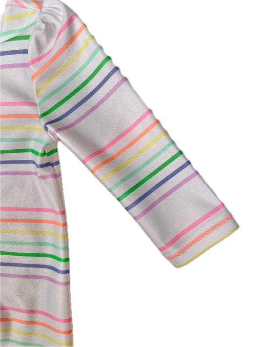 0-6 mo babyGap, White, Rainbow stripe long-sleeve one-piece swim suit, snap short bottom