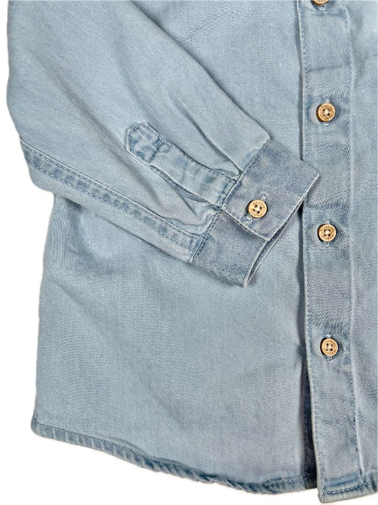 9 mo, Mayoral, Blue, Long-sleeve button-up shirt w/ mandarin collar, button roll-up sleeves