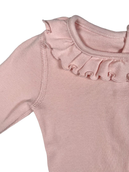 0-3 mo M&S, Pink, Long-sleeve bodysuit w/ ruffle collar & hand covers