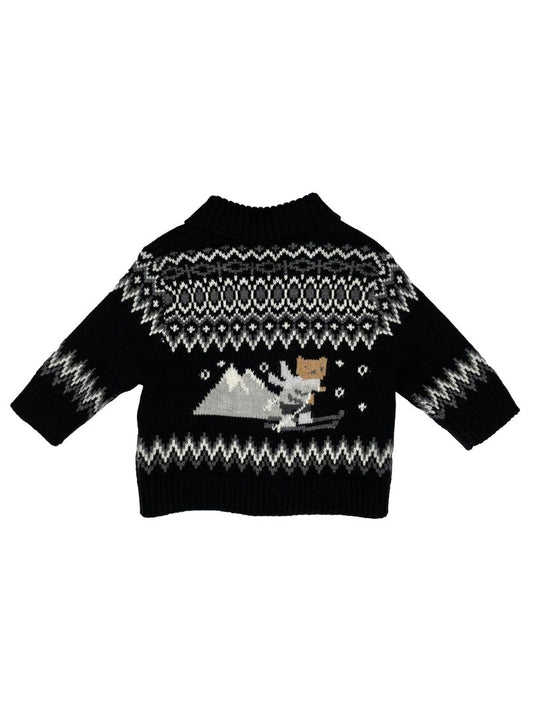 3-6 mo babyGap, Black, Fair isle shawl collar button-up cardigan, blk/white/grey