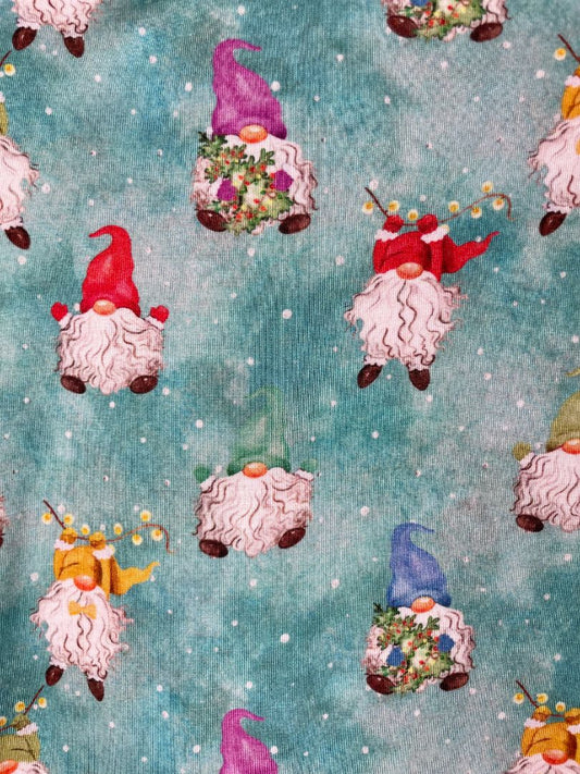 6-9 mo, Posh Peanut, Blue, Christmas gnome print footed zip-up sleeper