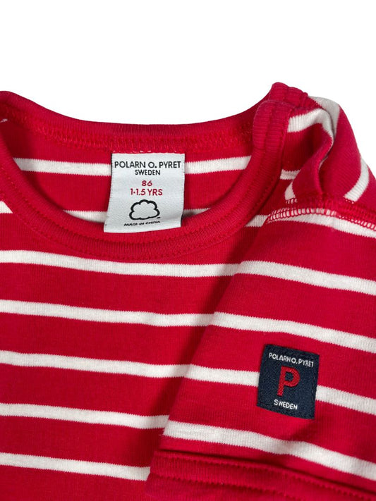 12-18 mo Polarn O. Pyret, Red, Short-sleeve striped t-shirt, red/white