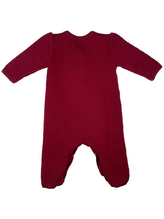 3-6 mo baby GUESS, Purple, Heart pattern quilted body suit with bows & ruffles