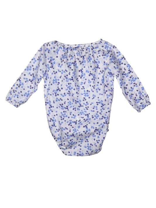 6 mo OshKosh B'Gosh, Blue, Long-sleeve floral onesie button neck white/blue