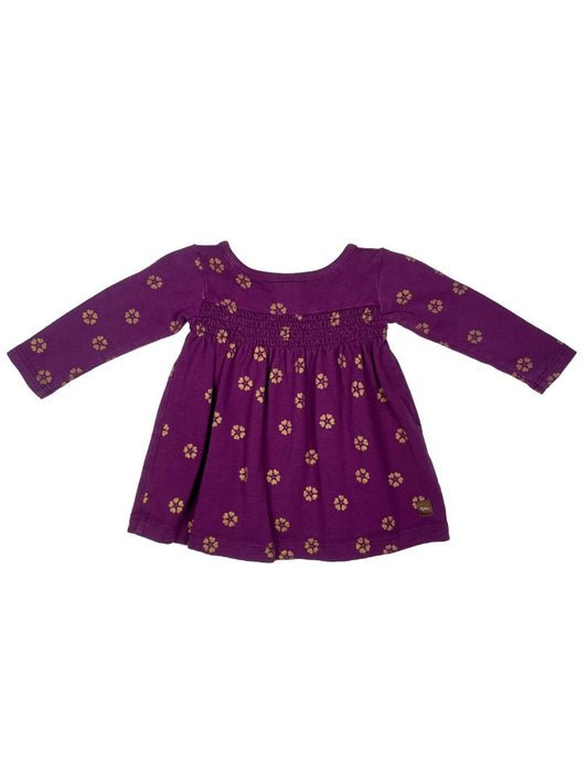 3-6 mo Tea Collection, Purple, Long-sleeve gold glitter flower print shirt w/ smocking