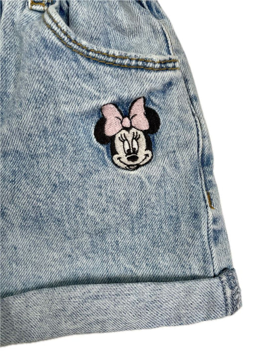 4-5, Zara, Blue, Mickey & Minnie Mouse paper bag denim shorts, elastic waist + zip/snap