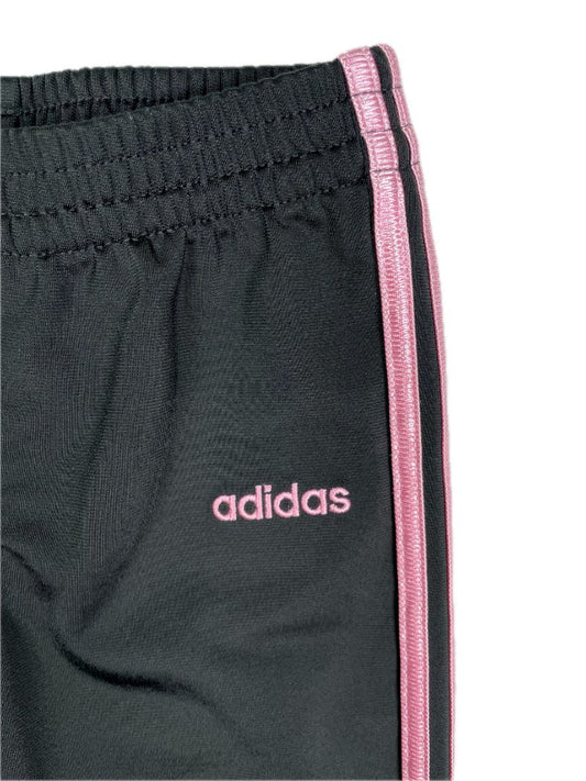 12 mo, Adidas, Black, Pull-on active pants, pink tri-stripes on sides