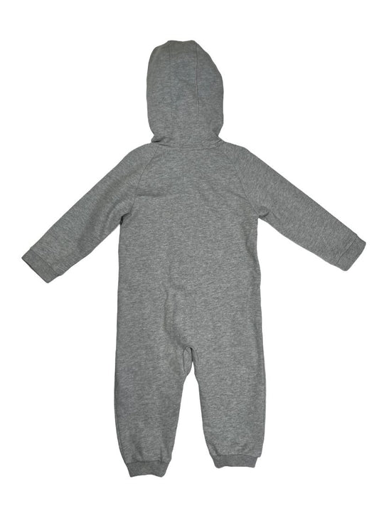 18 mo, Adidas, Grey, Hooded zip-up coverall, white logo and hood stripes