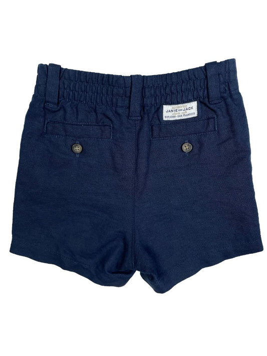3-6 mo, Janie and Jack, Blue, Linen-cotton shorts, zip/button with elastic back