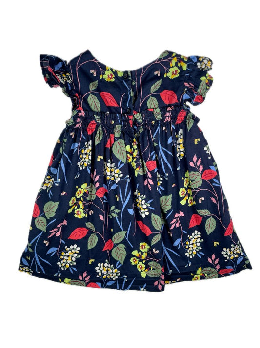 18-24 mo, babyGap, Blue, Flutter sleeve floral dress, smocked waist, red/green
