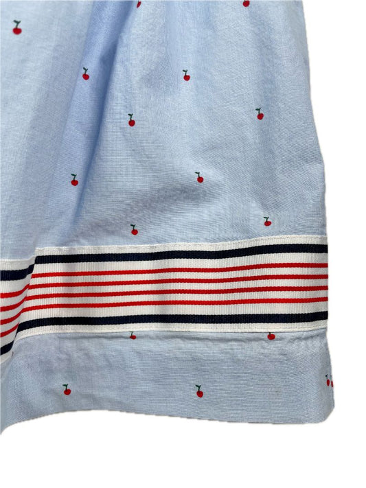 18-24 mo, Janie and Jack, Blue, Short-sleeve cherry dress w/ striped hem, bow + bloomers SET