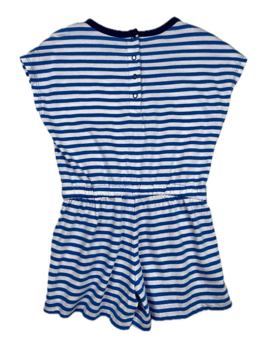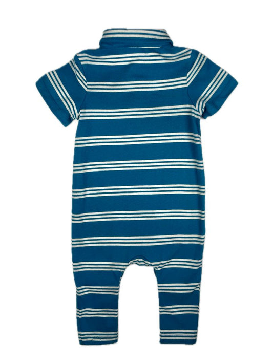 6-12 mo, Hanna Andersson, Blue, Short-sleeve collared romper, white-striped