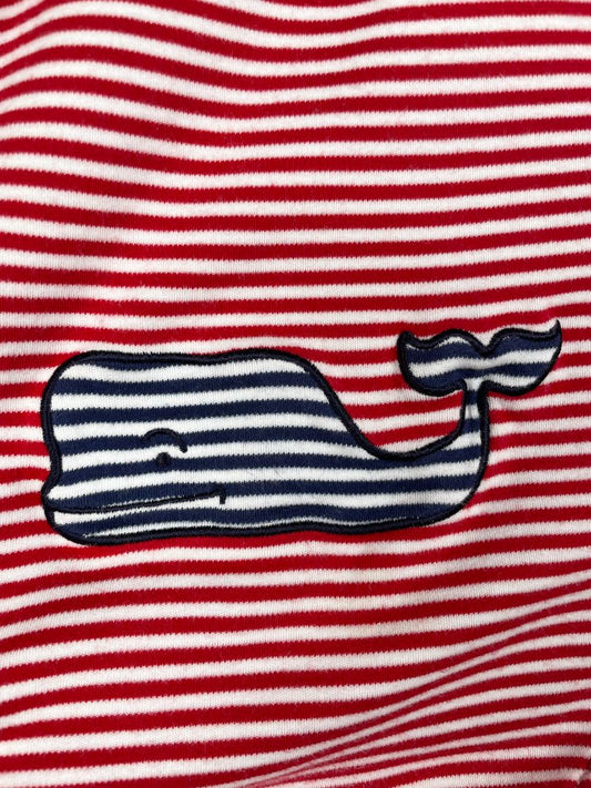 12-18 mo, Vineyard Vines, Red, Striped bodysuit, straps with bows, blue whale on back