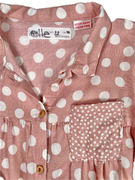 2-3, Zara, Pink, White polka dot button-up blouse, button sleeve option