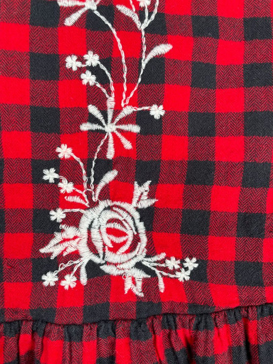 3/3T, babyGap, Red, Black gingham drop-waist long-sleeve dress w/ white floral embroidery