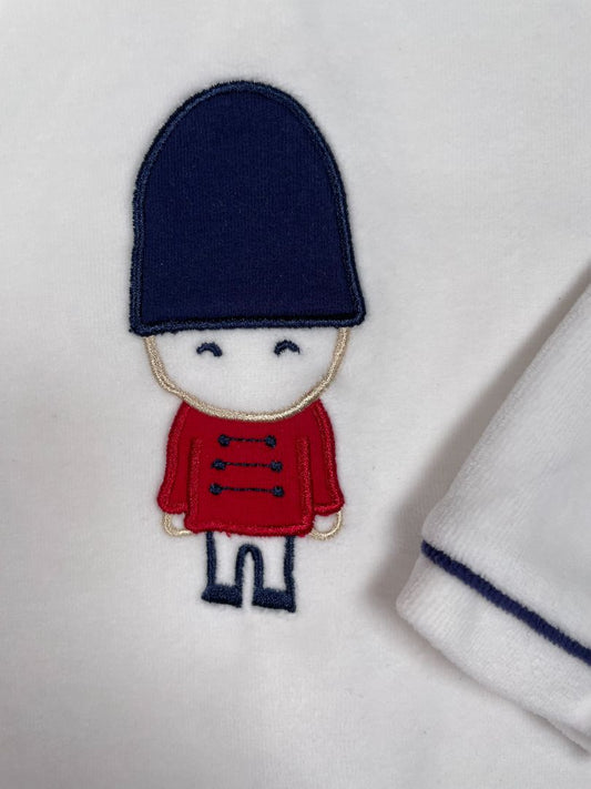 12 mo, Mayoral, White, London guard fleece long-sleeve footed coverall, red/blue plaid accents